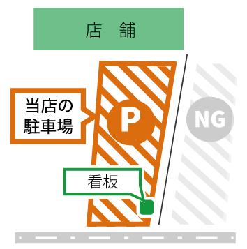 当店駐車場は店舗前のスペースのみになっております。